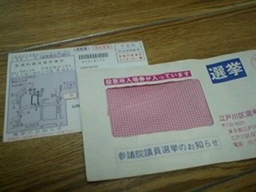 3月末に江戸川区から西京区に転居届けを出したんだけど、両方から参議院議員選挙の投票所入場券が届いた。私は普通の人の2倍の参政権を持っていいと国家から認められたわけだ。ふぉふぉふぉ。 ちなみに江戸川区からきた封筒は、転居届けにしたがって郵便局が…